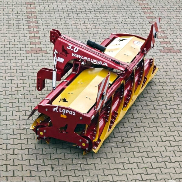 The manufacturer of LUPUS rollers offers a front V-ring roller fi 600 (photo in the film) equipped with a beam with scrapers and a hydraulic spear. There are 20 roofs (angle bars bent to a diameter of fi 600 mm) welded on a 100×100 profile.