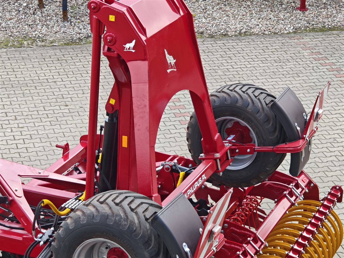 W pozycji roboczej wózek zostaje uniesiony nad bronę, dzięki czemu cały ciężar maszyny dociąża wał oraz sekcję talerzową. Efekt? Talerzówka półzawieszana LUPUS doskonale zagłębia się nawet w suchą i twardą glebę – bez efektu „ślizgania się” po powierzchni. To „genialny patent na suche lata”, gdy warunki wymagają maksymalnej siły nacisku.