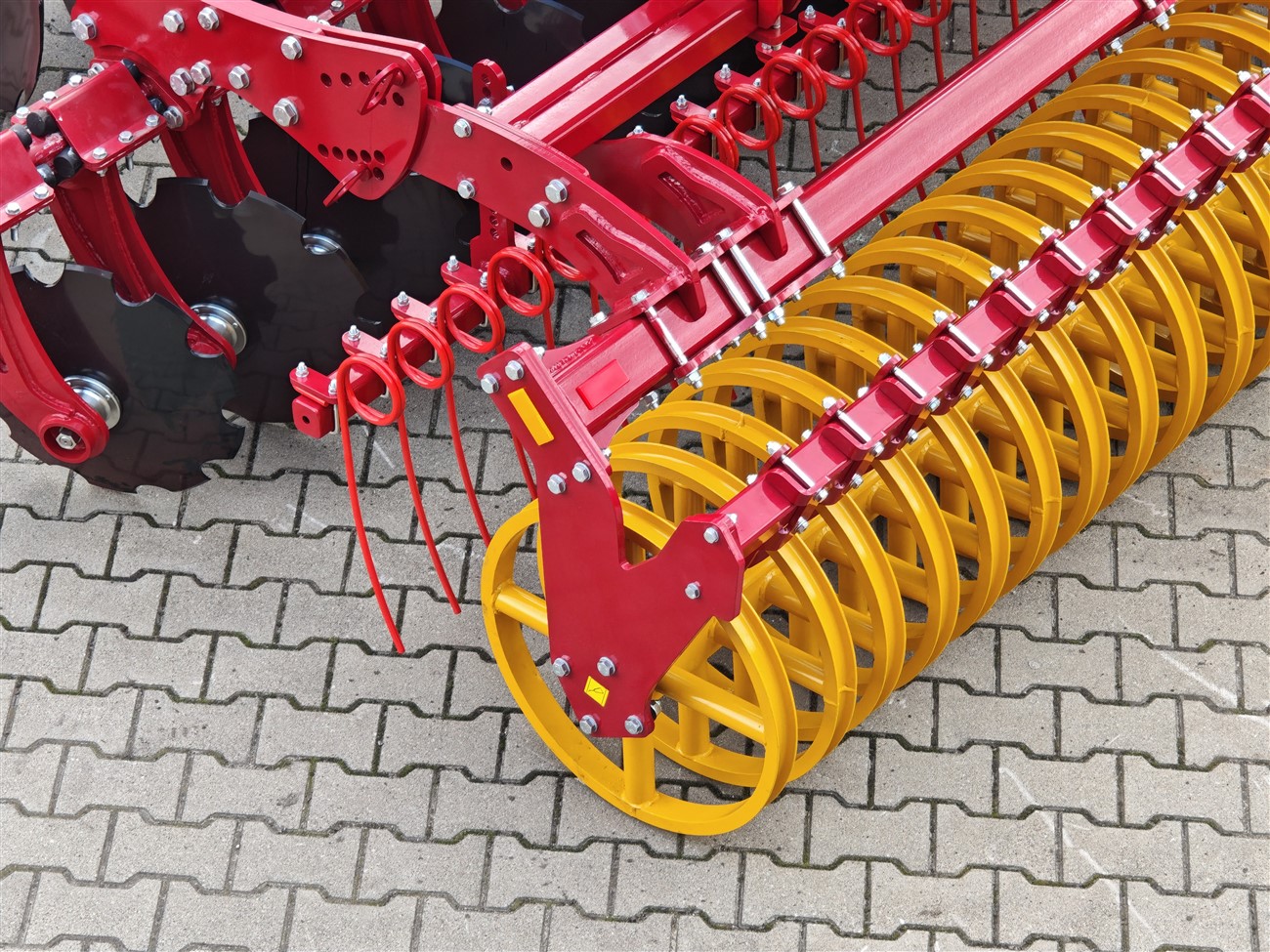 Koła Podporowe Przednie (opcja): Umożliwiają precyzyjne utrzymanie stałej, zadanej głębokości roboczej, zwłaszcza przy płytkiej uprawie lub na nierównym terenie. Zapewniają dokładne kopiowanie terenu przez bronę talerzową półzawieszaną.