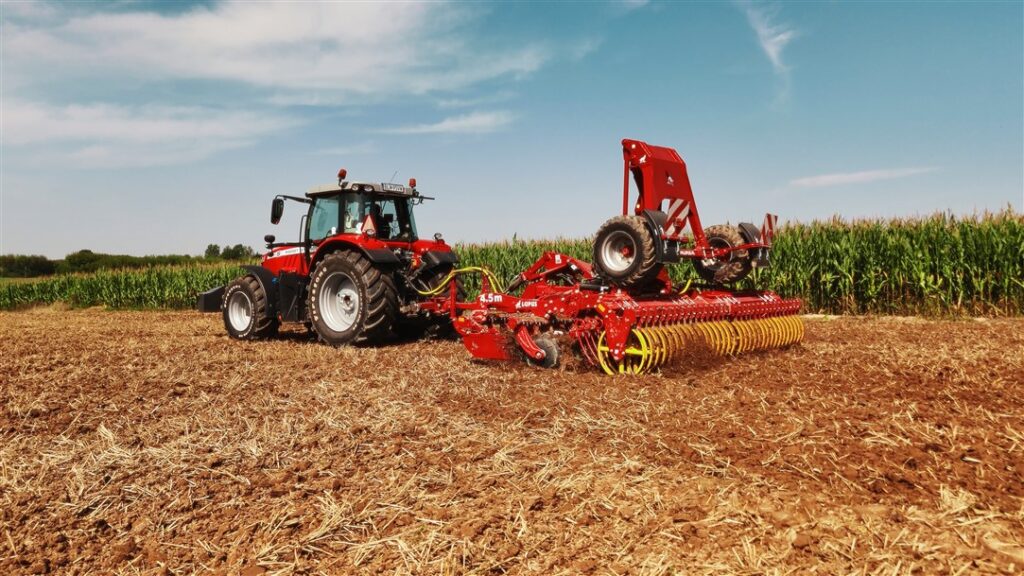 - Błyskawiczna zmiana (Hydraulika): Jak hydrauliczna regulacja dyszla i wału pozwala z kabiny przejść z głębokiej pracy (12 cm) na ultra-płytką po żniwach.